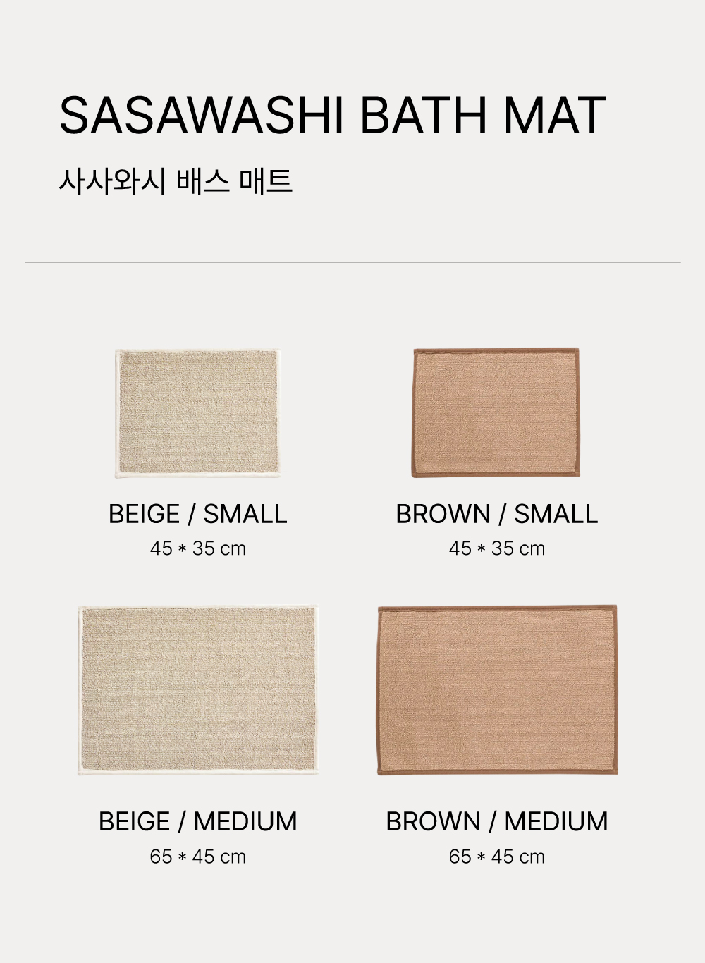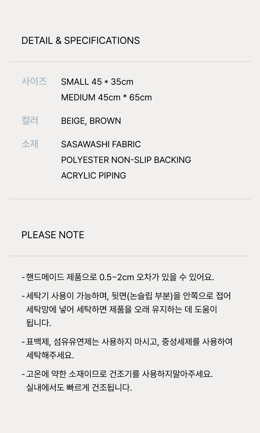 사사와시 패브릭(대나무잎 섬유+종이), 뒷면:폴리에스테르(논슬립), 테두리:아크릴