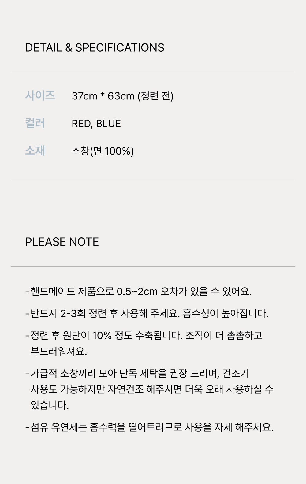 세탁방법 및 취급시 주의사항